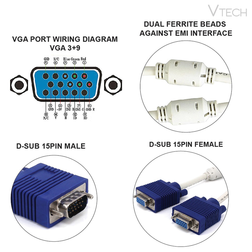 Vga cable wiring sub db15 diagram computer monitor 1080p connection